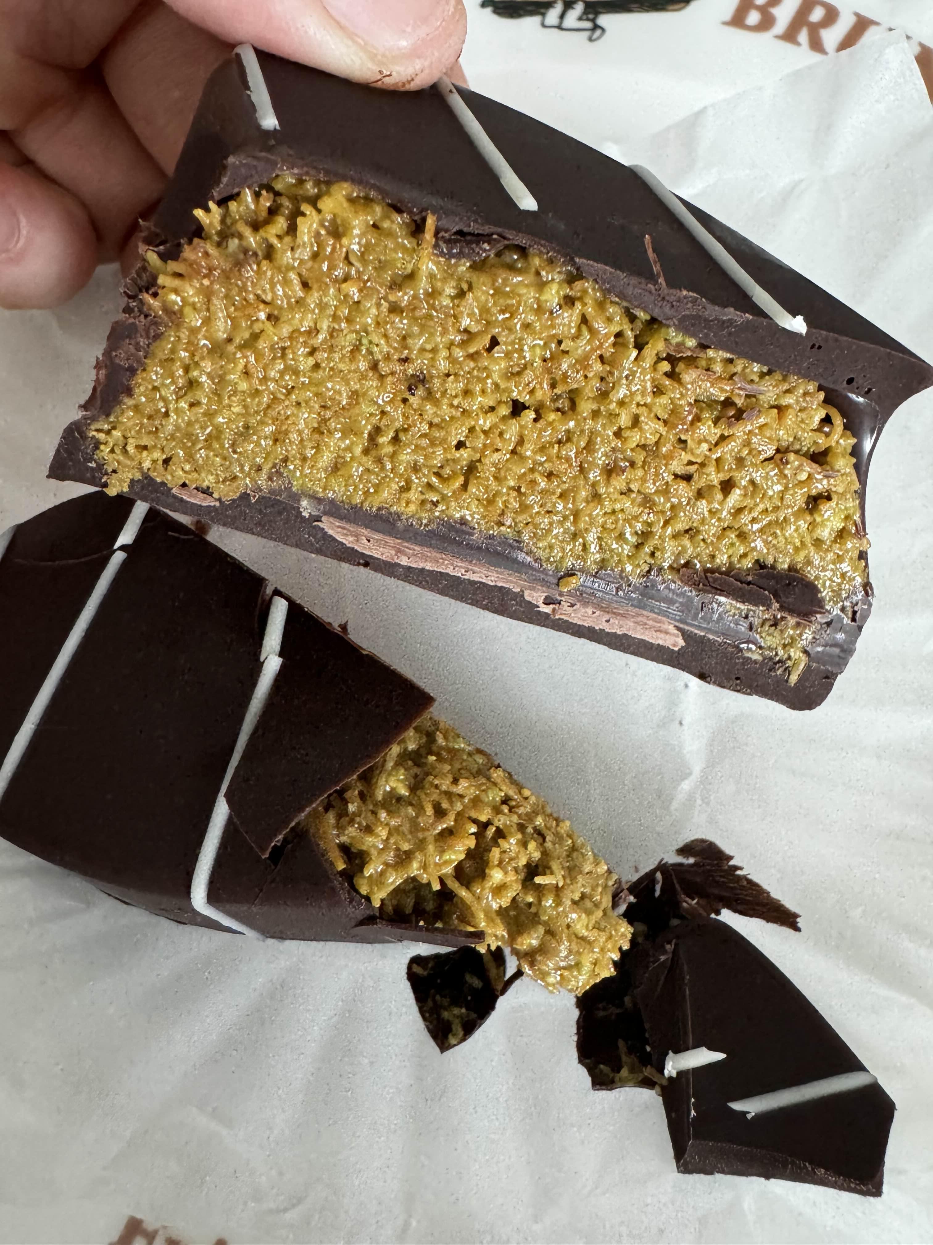 집에 돌아와서 드디어 기다리던 두바이 초콜릿과 쿠키를 시식하게 되었어요. 두바이 초콜릿은 다크 초콜릿 베이스에 바삭한 카다이프와 고소한 피스타치오 크림이 조화를 이루는 맛이 정말 일품이었어요. 하지만 초콜릿의 두께가 일정하지 않아 어떤 부분은 너무 두꺼워서 아쉬웠어요. 조금 더 얇았다면 더 좋았을 것 같아요.