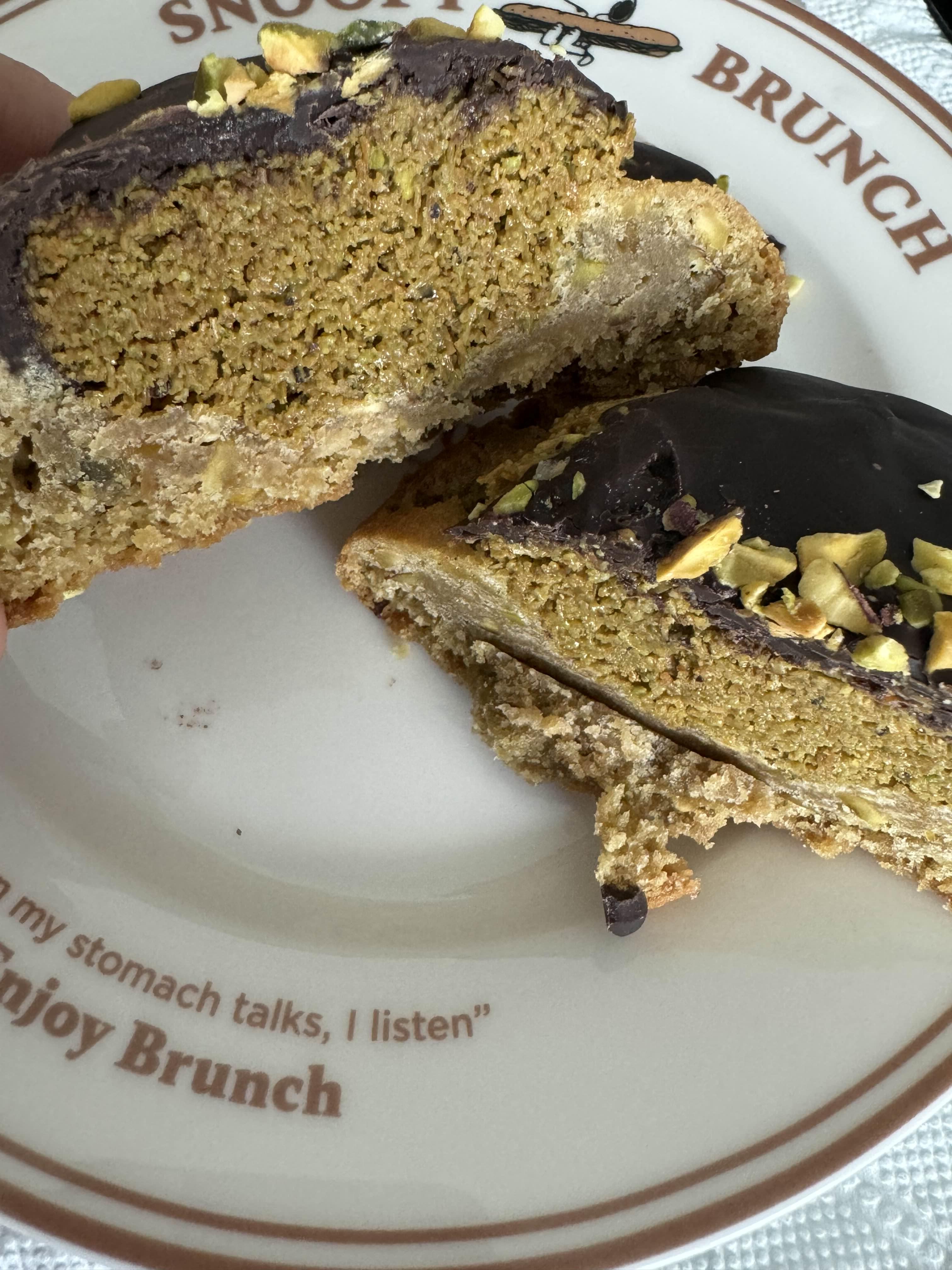 오히려 제 입맛에 더 잘 맞았던 건 두바이 쿠키였어요. 쿠키 도우 자체가 정말 맛있어서, 무슨 토핑이든 다 잘 어울렸을 것 같더라고요. 특히 카다이프와 피스타치오 분태가 들어가 있어서 씹는 식감이 더욱 풍부해져서 아주 만족스러웠어요.