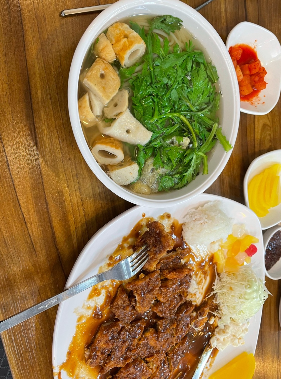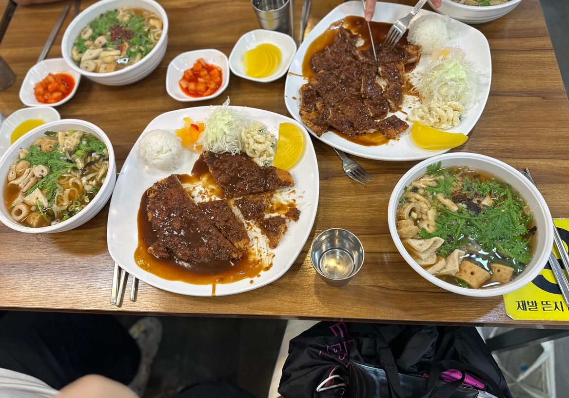 여기서의 발견은 바로 돈가스! 우동만 먹으면 살짝 감칠맛이 부족할 수도 있는데, 돈가스와 함께 먹으니 그야말로 찰떡궁합이었어요. 돈가스를 같이 파는 이유가 바로 이거였나 봐요. 담백한 우동과 소스에 버무려진 옛날돈가스가 조화를 이뤄서 정말 만족스러웠어요!