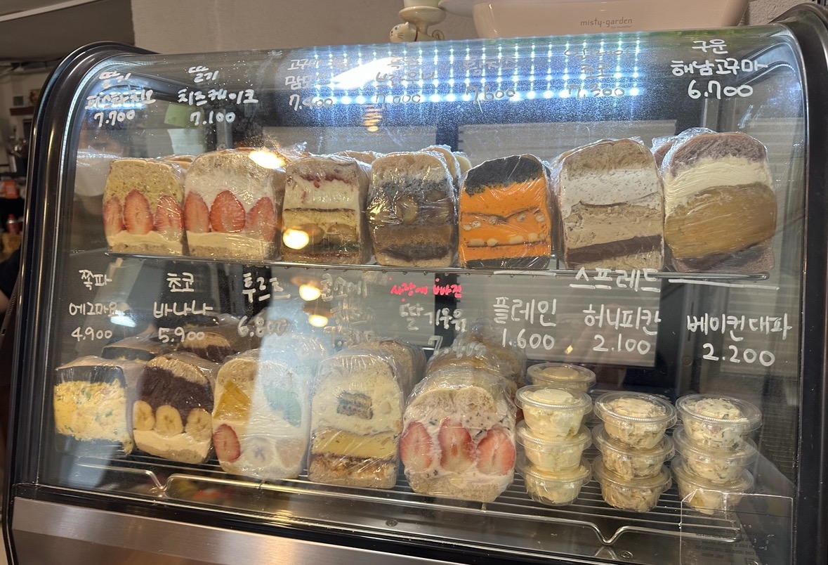 저희는 그 당시 오픈 시간에 맞춰 도착했는데, 가게 안에 들어가자마자 다양한 베이글들이 우리를 반겨주더라고요. 냉장고에 차곡차곡 쌓여있는 크림이 들어간 베이글부터 실온에 진열된 베이글까지, 하나같이 맛있어 보였어요. 특히 딸기 피스타치오 베이글은 인기 메뉴라 그런지 정말 빨리 동나더라고요. 그래서 망설이지 않고 바로 겟!
