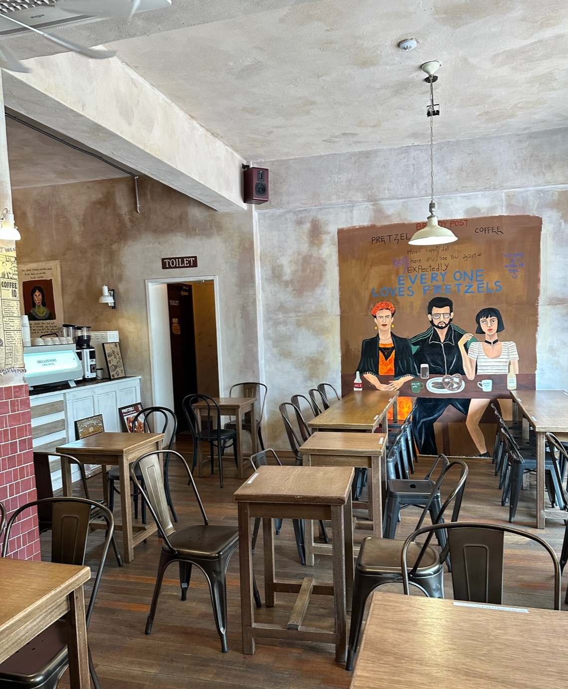 도착하자마자 느낀 것은 이곳의 힙한 분위기와 귀여운 프레즐 모양의 인테리어였어요. 프레즐을 좋아하는 사람이라면 첫눈에 반할 거예요. 내부는 아늑하면서도 세련된 느낌이었어요.