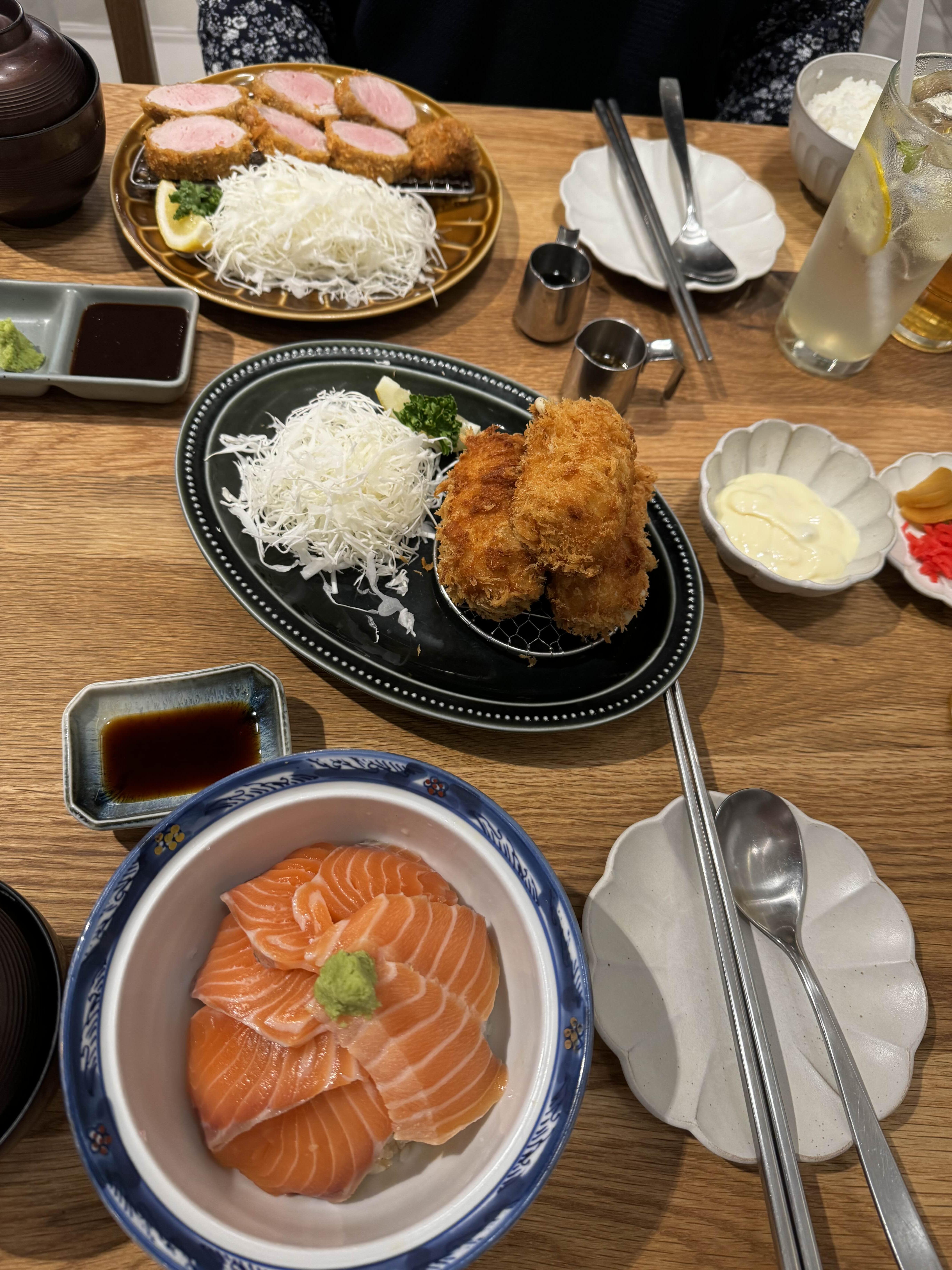 히레가츠정식, 사케동(연어덮밥), 그리고 에비크림크로켓을 먹었어요!