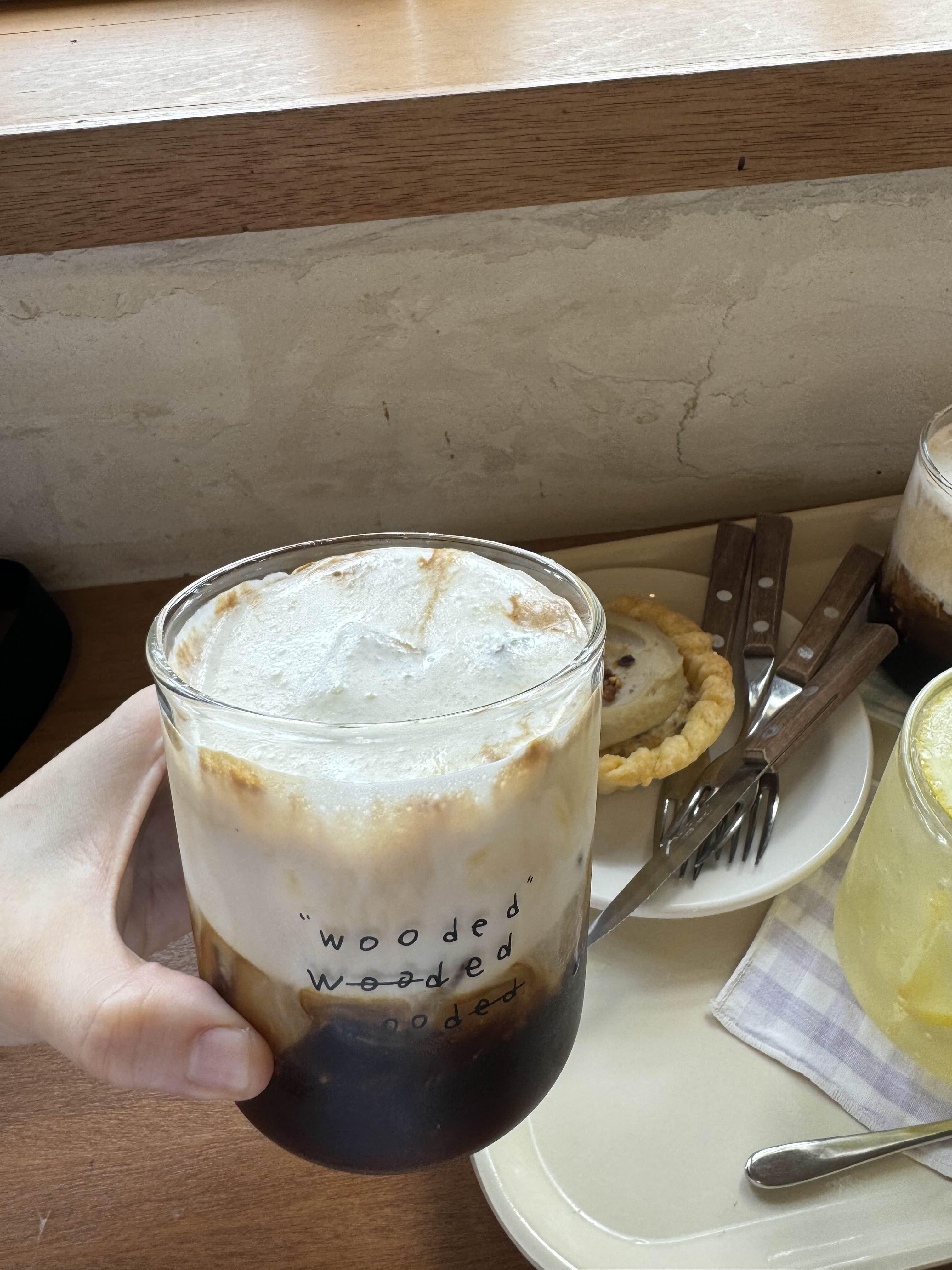 쫀쫀하고 꾸덕한 우디드 크림이 올라간 시그니처 라떼입니다. 커피의 진한 맛과 크림의 부드러운 조화가 매력적입니다.