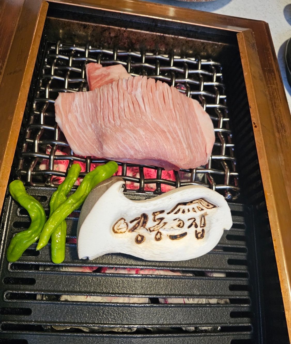 저희는 돼지가리비, 삼겹살, 그리고 그집된장술밥을 주문했어요. 이 집은 고기를 직접 구워주시는 서비스가 있었어요!
