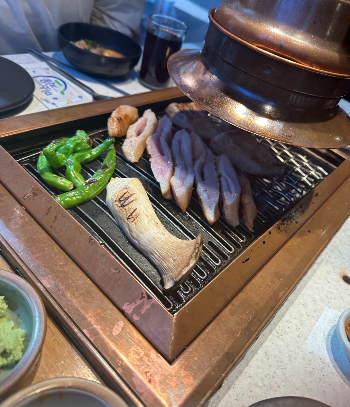 덕분에 고기의 완벽한 맛을 놓치지 않고 즐길 수 있었죠. 그중에서도 돼지가리비살이 정말 대박이었어요! 참고로 돼지가리비살은 가브리살과 항정살을 말하는데, 제가 원래도 항정살을 좋아해서 그런지 너무너무 맛있었어요. 비계와 살코기의 완벽한 비율, 그리고 그 부드러운 식감에 눈물이 찔끔 날 정도였답니다.