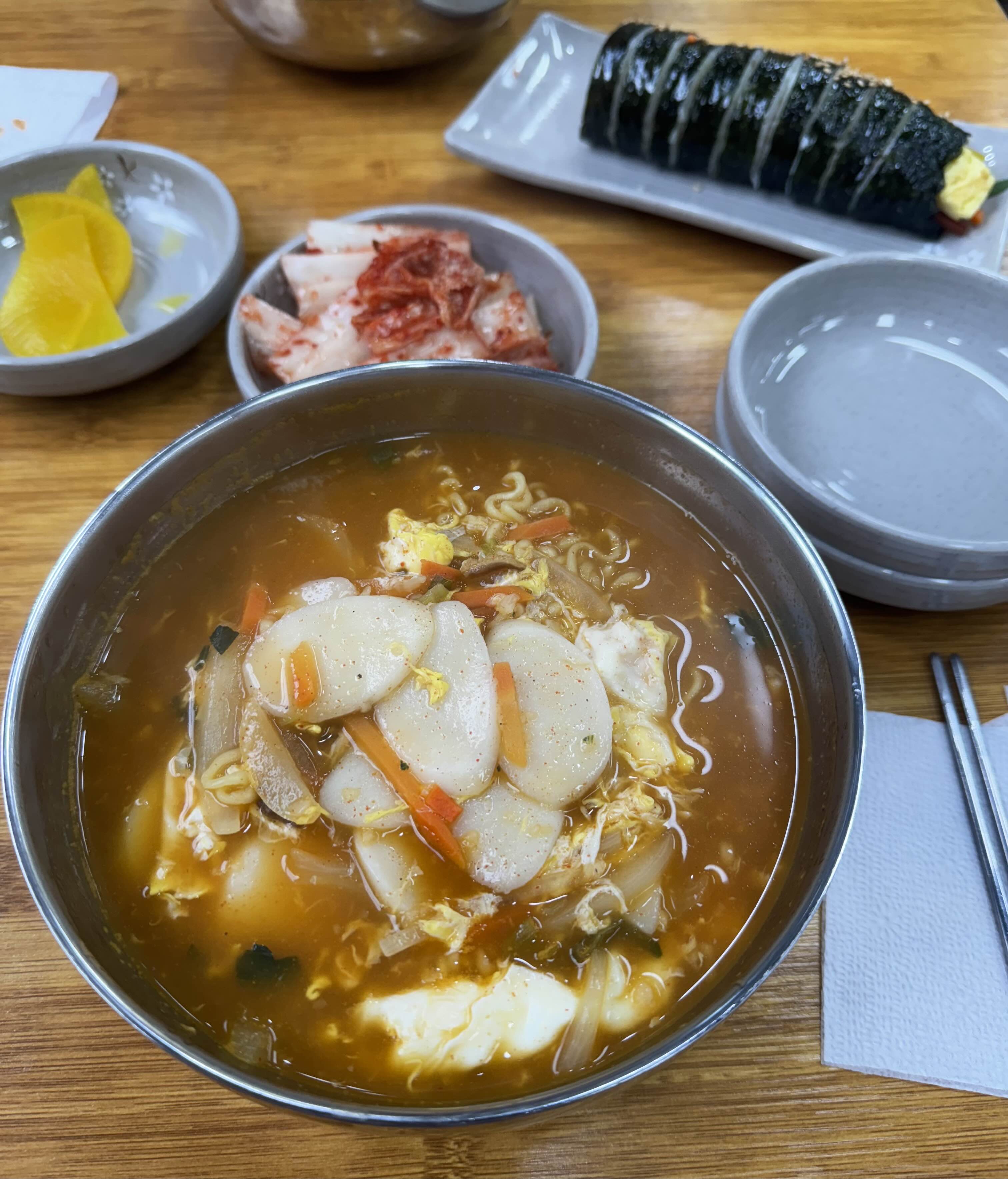 떡라면은 평범하면서도 든든한 맛이었어요. 떡이 넉넉히 들어가고 계란이 풀어져 있어서 라면 한 그릇만으로도 충분히 배를 채울 수 있었어요.