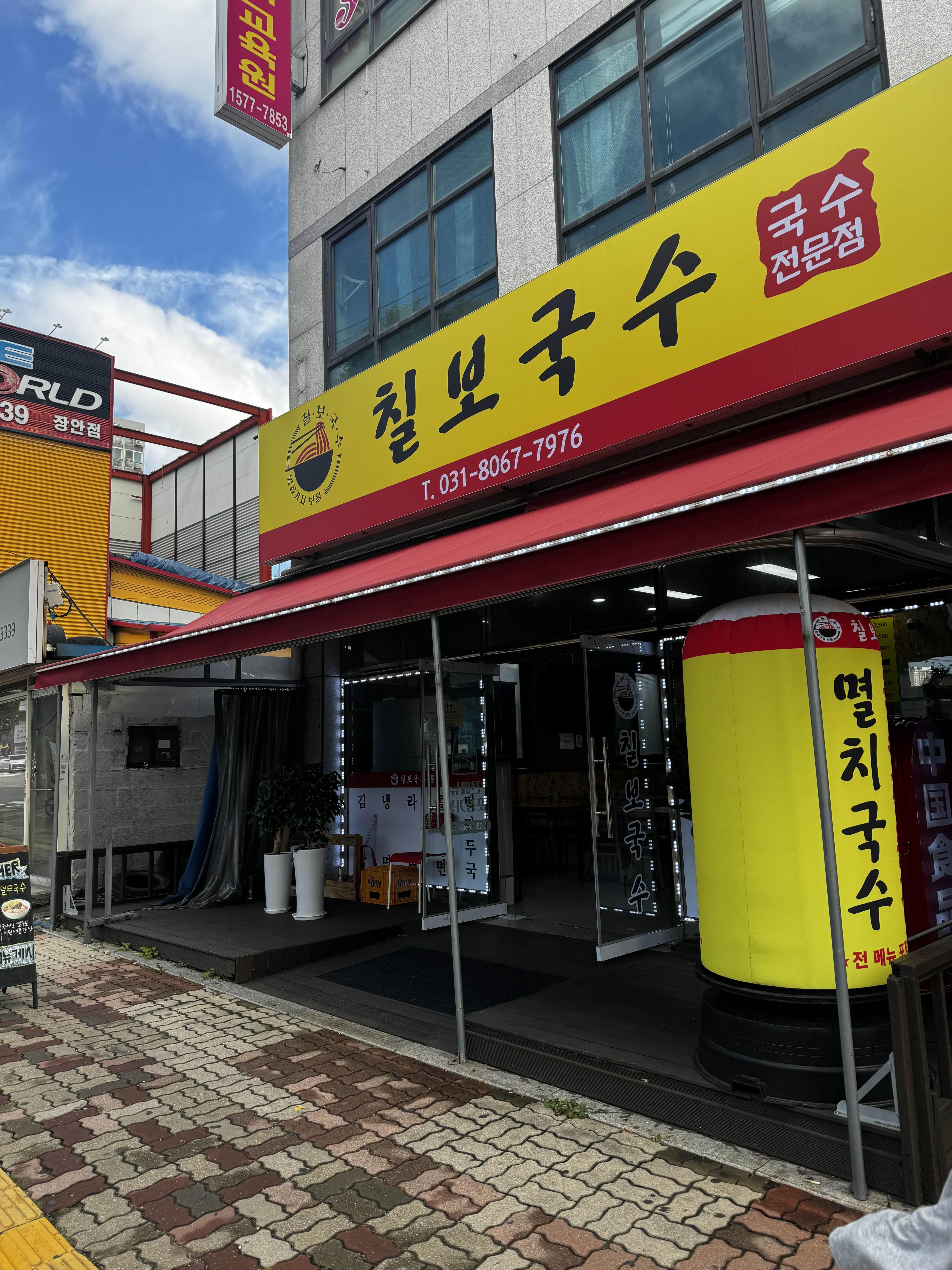 수원 영화점에 위치한 칠보국수를 방문하게 되었습니다. 이곳은 가격 대비 든든한 식사로 유명한데, 점심때 동물병원을 다녀오다가 급히 들러보게 되었어요.