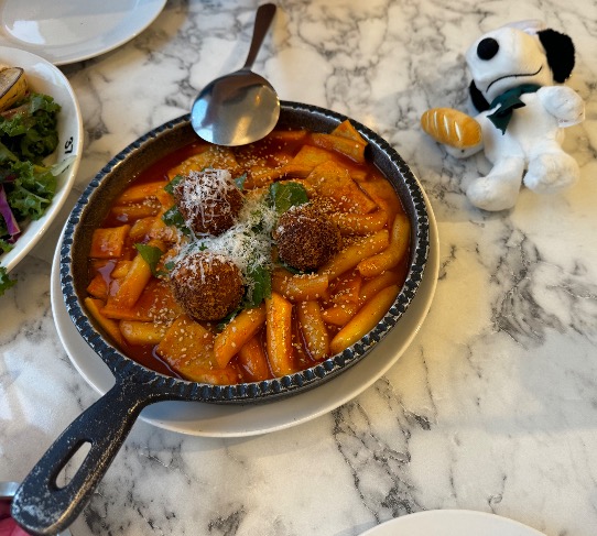 마지막으로는 37.5 떡볶이! 떡볶이가 식사 메뉴로 준비되어 있는 것이 굉장히 신선했어요. 매콤달콤한 소스가 떡에 잘 배어들어서 정말 맛있게 먹었고, 수제 토핑 아란치니가 올려져서 고급스러운 느낌까지 더해졌어요.