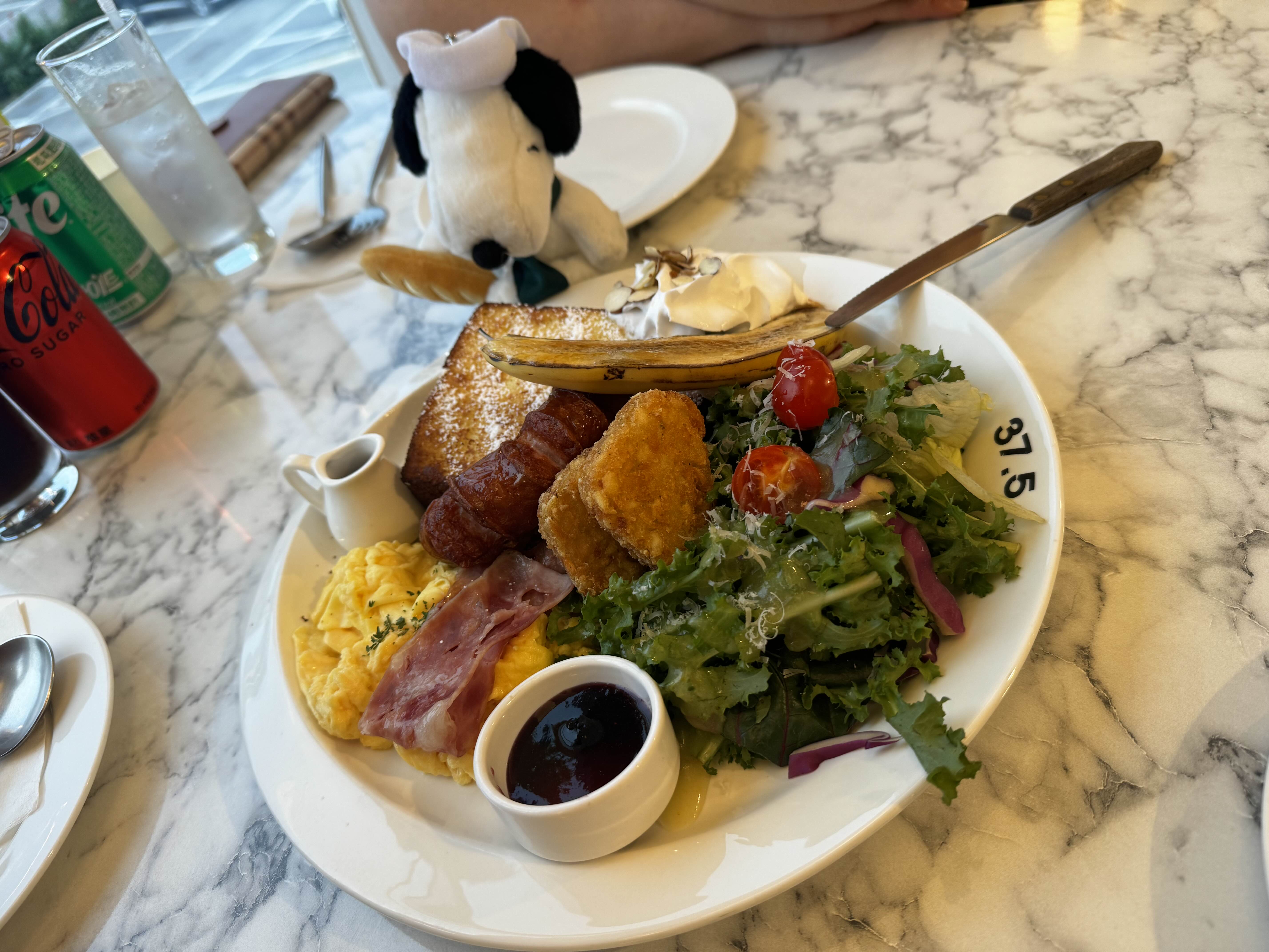 저희는 이번에 정말 다양한 메뉴를 주문했는데요, 하나하나가 정말 만족스러웠습니다. 우선, 푸짐하고 따뜻한 미국식 브런치 세트를 먹었어요. 브런치 세트에는 정성스럽게 구운 팬케이크와 프렌치토스트가 주인공이었고, 그 외에도 베이컨, 소시지, 계란 스크램블, 그리고 신선한 샐러드가 곁들여져 있어 정말 푸짐한 한 끼를 느낄 수 있었습니다. 특히 팬케이크는 부드럽고 촉촉한 맛이 일품이었어요!